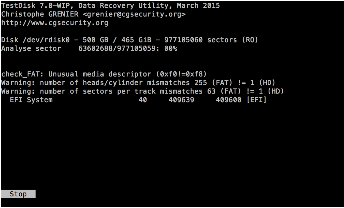 Disk: /dev/disk0 geometry: 60821/255/63 [977105060 sectors]