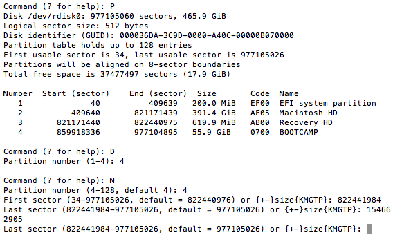 gpt show: /dev/disk0: Sec GPT at sector 977105059