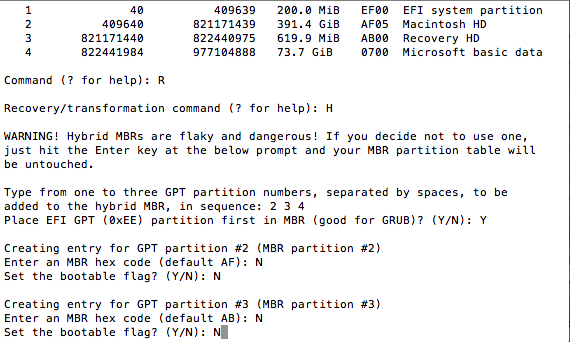 gpt show: /dev/disk0: Suspicious MBR at sector 0