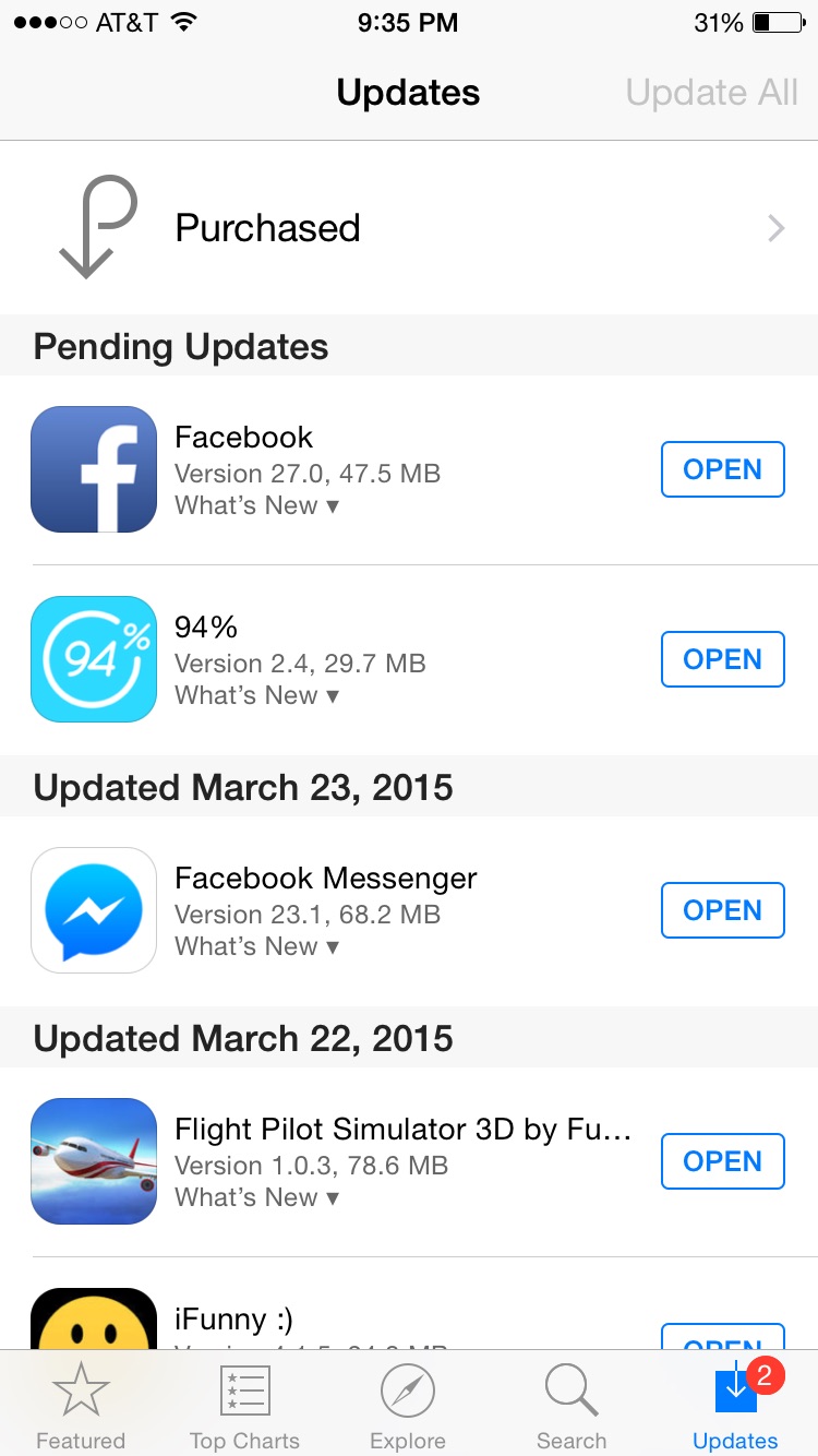 i recently got the little "2" above my App Store icon, and I went in and it said 2 apps could update. I hit "update all", and when I went back on my phone awhile later (hours later), the "2" was still above my App Store icon, so I went into App Store to check the updates, and the apps that i had updated earlier said "open" next to them, as it normally does after an app update is complete But the notification won't go away! I still have a "2" above the App Store icon!