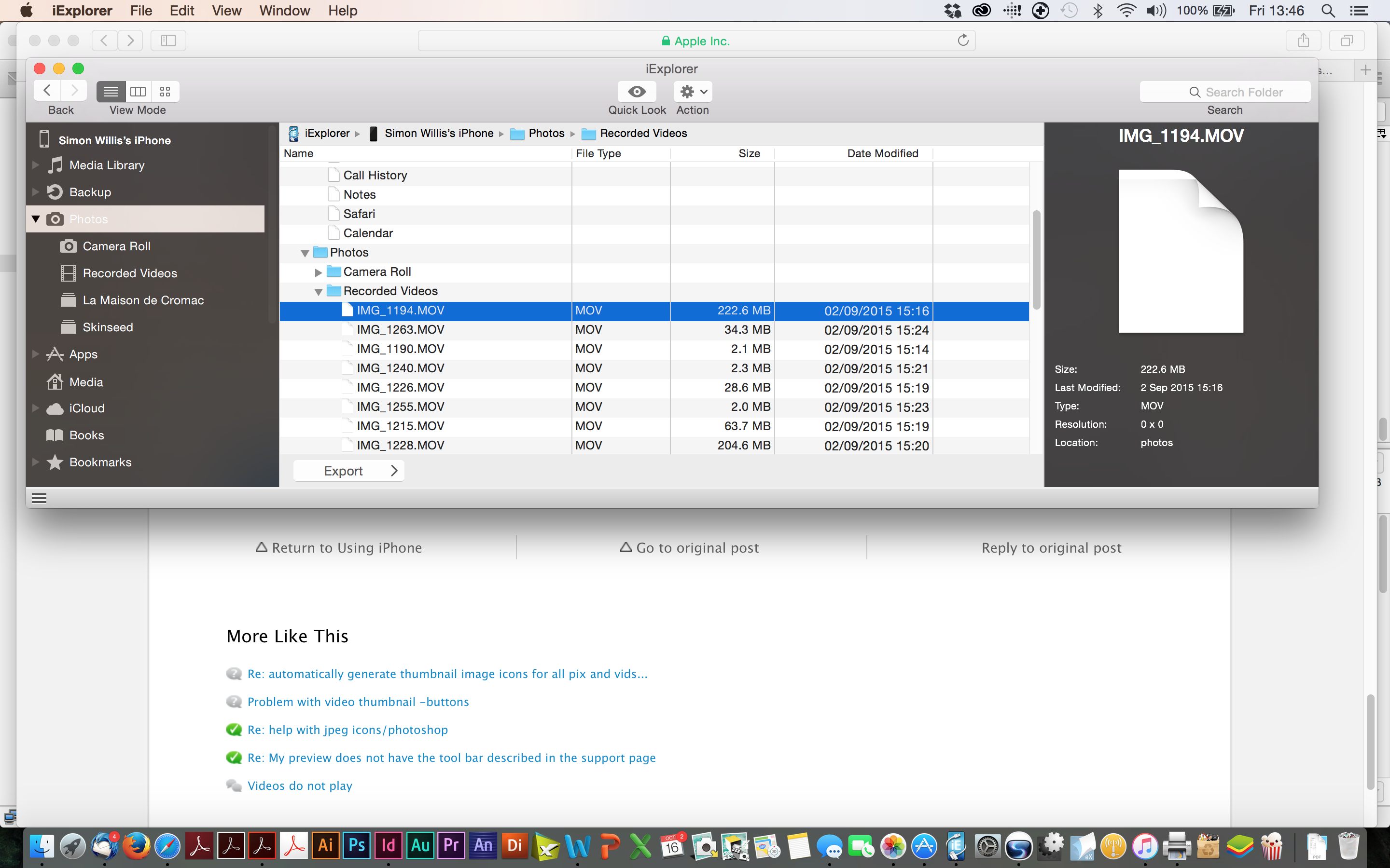 I have looked at the files using iExplore and it won't import them to Mac from there. Some of the files are over 200mb but in the preview area it says resolution 0x0.