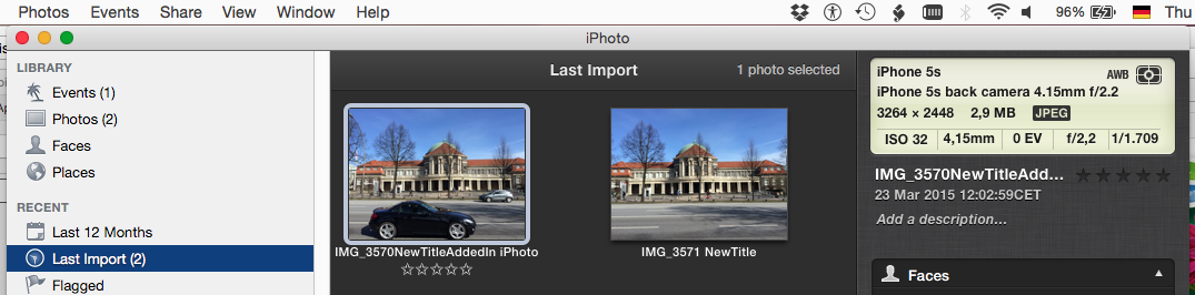 Note that the full title (which is actually the edited filename) appears in iPhoto.
