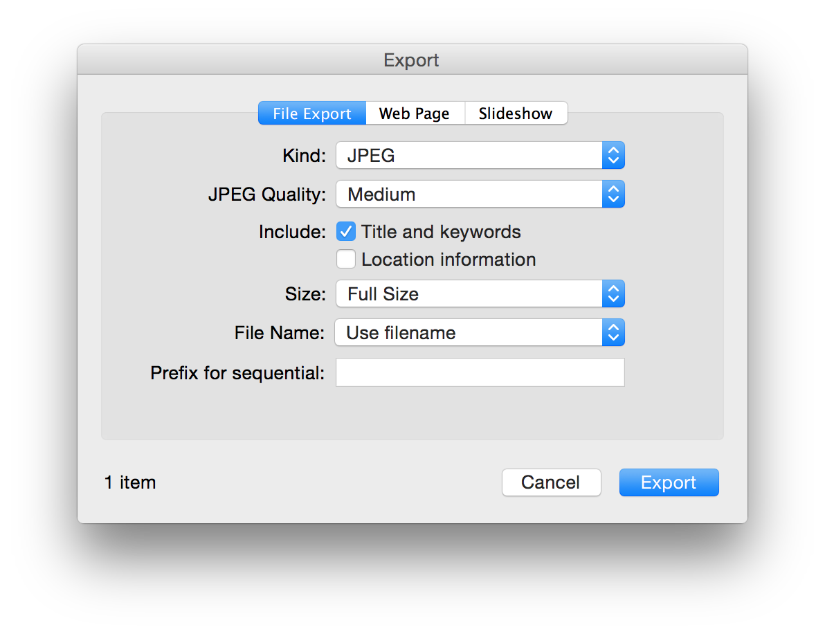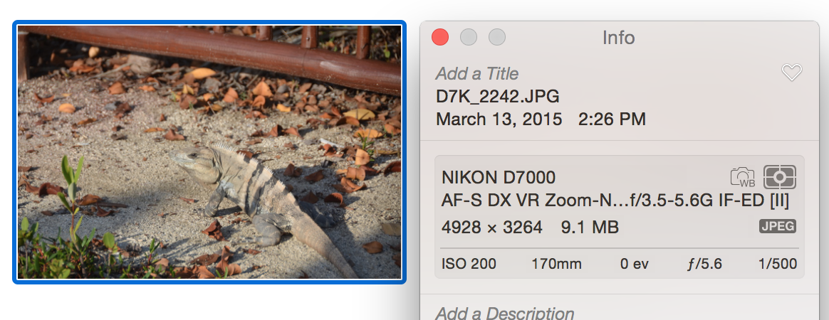 Any other settings for Kind (e.g., Original) will result in the title not carried over to Photos. Here's how the above export looks in Photos: