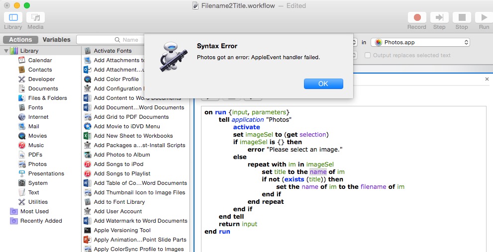 The filename edited in iPhoto (="title") does not appear in Photos.