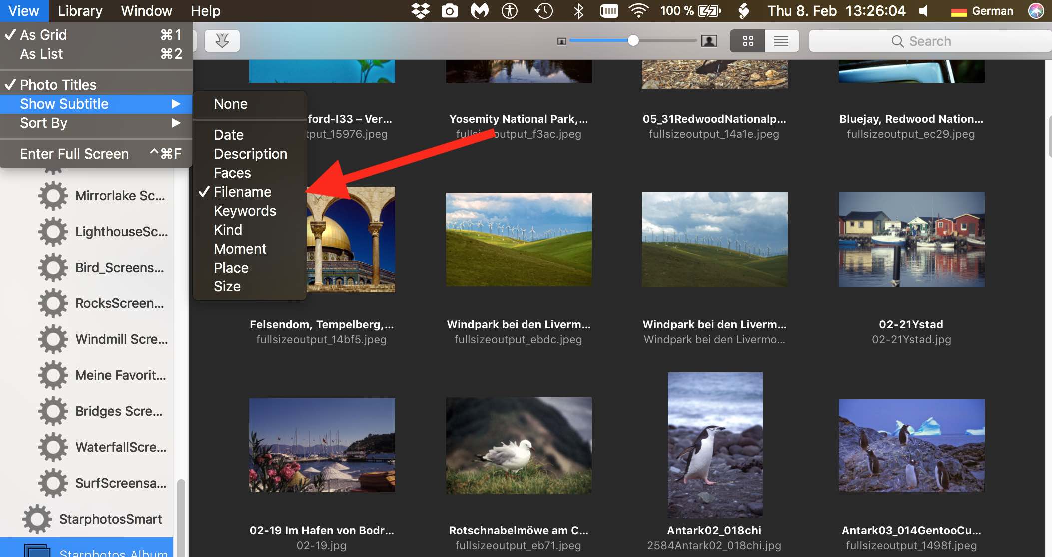 Note that the full title (which is actually the edited filename) appears in iPhoto.