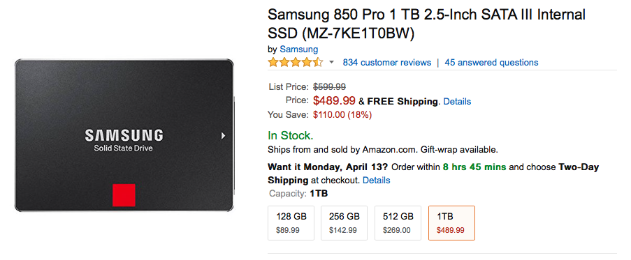 Can I purchase either an HDD or and SSD that is 1.5TB for my existing MacBook Pro? If so approximately how much will this cost?