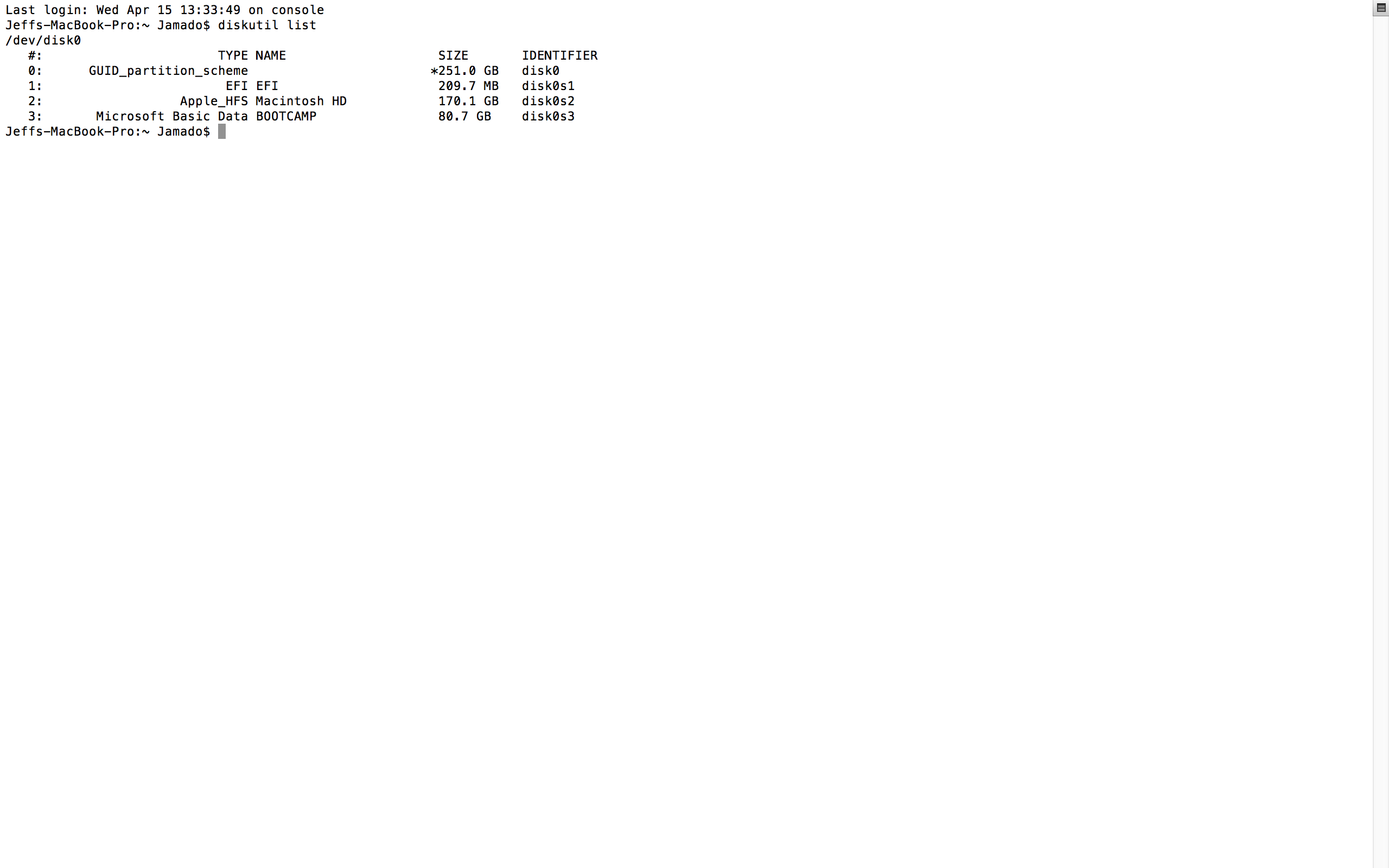 Disk: /dev/disk0 geometry: 30515/255/63 [490234752 sectors]
