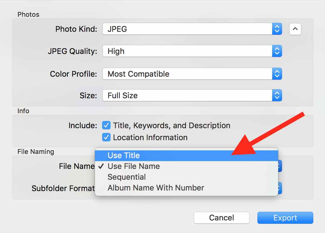 I recently 'updated' to Photos from iPhoto. Now I can't see how to rename groups of my pictures. E.g. when I import from qmycamera, I could select some of the imported photos and give them a common name and sequential numbering, then do the dame for another selection of photos, giving them a different name with sequential numbering. In iPhoto, I could use the "rename photos" function in the menubar Photos dropdown menu where I had options to change various things including rename with text and sequential numbering for selected groups of photos. I can't find this function anywhere in the new Photos application on Yosemite.