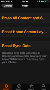 Step 3: Click the magic button referenced above: iPhone > Apple Watch > General > Reset > Reset Sync Data. I actually don't think this button is wired up to anything. But at this point, superstition is all we have since Apple wants us to think their technology has advanced enough to look like magic.