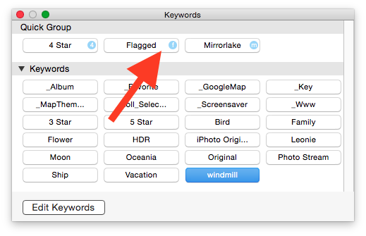 How do I flag a photo in Photos? Do I have to make a smart album and use 'flagged' as a key work? Very cumbersome!!!
