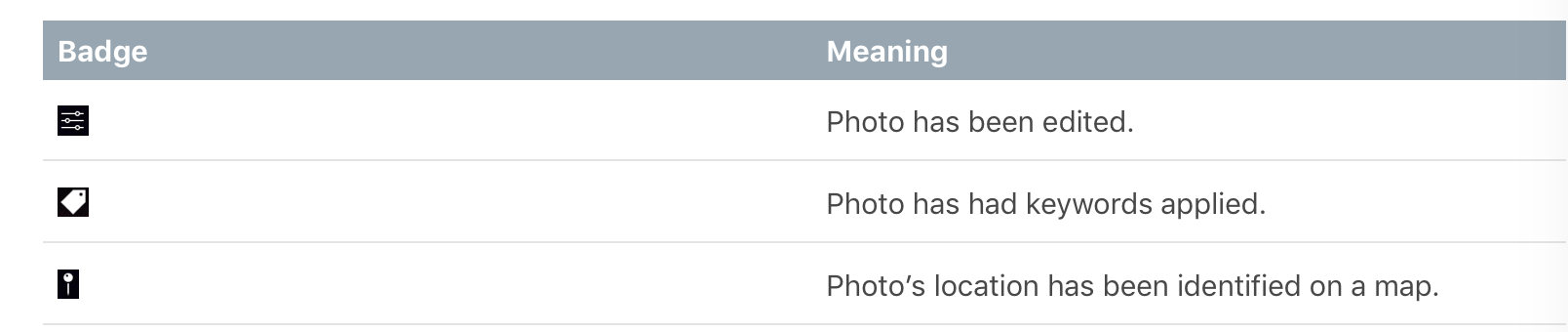 What are the icons that show up on some pics in the new Photos app? I see some of them having what looks like a suitcase in the lower right corner.