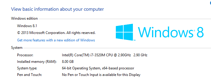 My iMac is a I7-2600 CPU @ 3.4GHz with 16 GB RAM, system type-bit. Under system in Windows it shows Installed memory (RAM) 16 GB (2.48 GB usable).