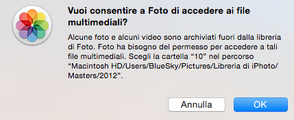 2) by following the instruction to allow Photos to access those photos, I cannot proceed since when clicking "OK" I need to manually point a folder inside iPhoto library, which is greyed in the opened window.
