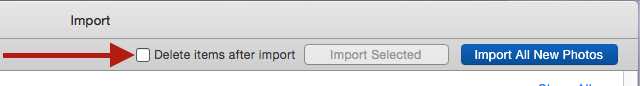 In the switch from iPhoto to Photos I am looking to find some of the functionality from the old program that has gone missing. I used to sync my iPhone with my MacBook Pro and upon finishing have the option to remove the already imported photos from my iPhone. Now I do not have that option or anything similar that I can tell. I cannot even select them all and delete them from my MacBook Pro. I am left either importing them again (which creates duplicates) just to delete them automatically, or I have to do it by hand.
