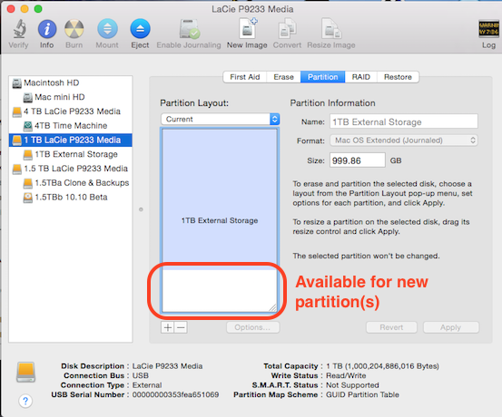 I've recently freed up over 160G of HD space (via offloading and deleting). My 320G HD is now reporting 189G of free space. My plan was to repartition the HD, setting aside 100G in a fresh partition into which I would install a new instance of Mavericks. (Here I'd then put those few apps that my current Yosemite setup can't handle.) Unfortunately, when I go to Disk Utility, it reports over 260G is "in use" and will only allow me to create a new, second partition of 50G. From what I've read, this is too small.