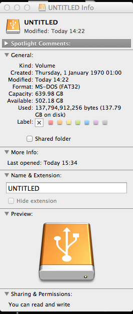 I have disconnected the drive from the network and connected it via USB to my MacBook and checked the Info window to look under "Shared" and untick the "Ignore Permissions on this Drive" box. But there are no options under Sharing and Permissions. It just says "You can read and write" as shown below.