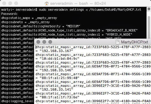 With Mac OS X.10 Server the ability to export/import service configuration (DHCP, DNS, File Share, ...) isn't available.