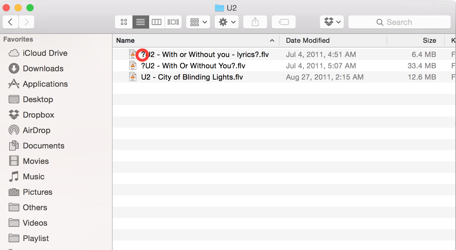 -rwxr-xr-x 1 Hossein staff 33447833 Jul 4 2011 ?U2 - With Or Without You??.flv