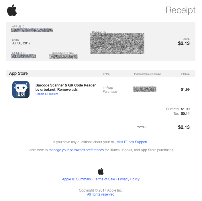 I just received what looks like a scam email. It is supposedly for a receipt from iTunes for a product that I didn't buy. The email contains a link to a cancel form and I have never seen this from iTunes in the past. The form asks for your personal details as well as your credit card details, including the security code.