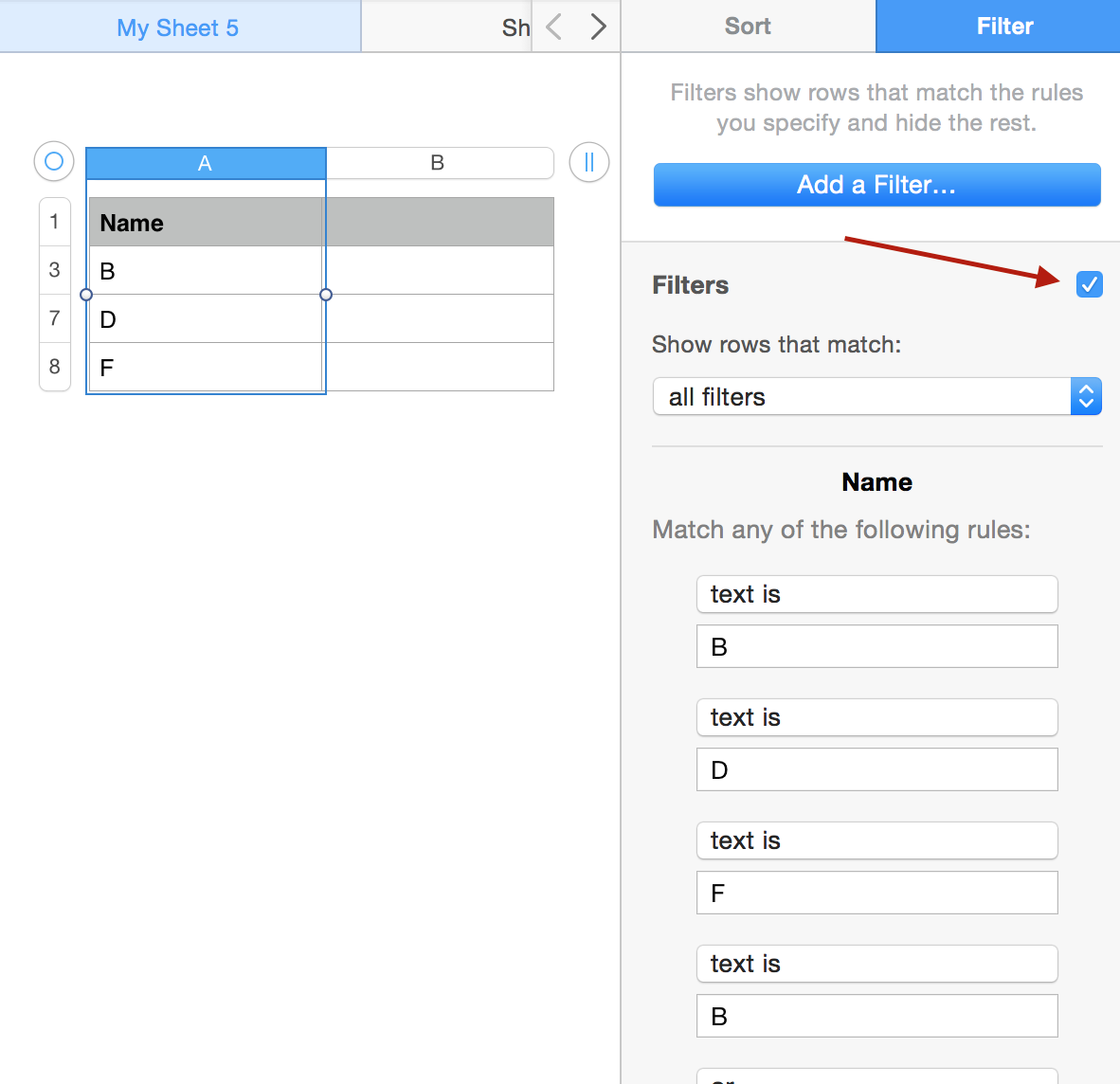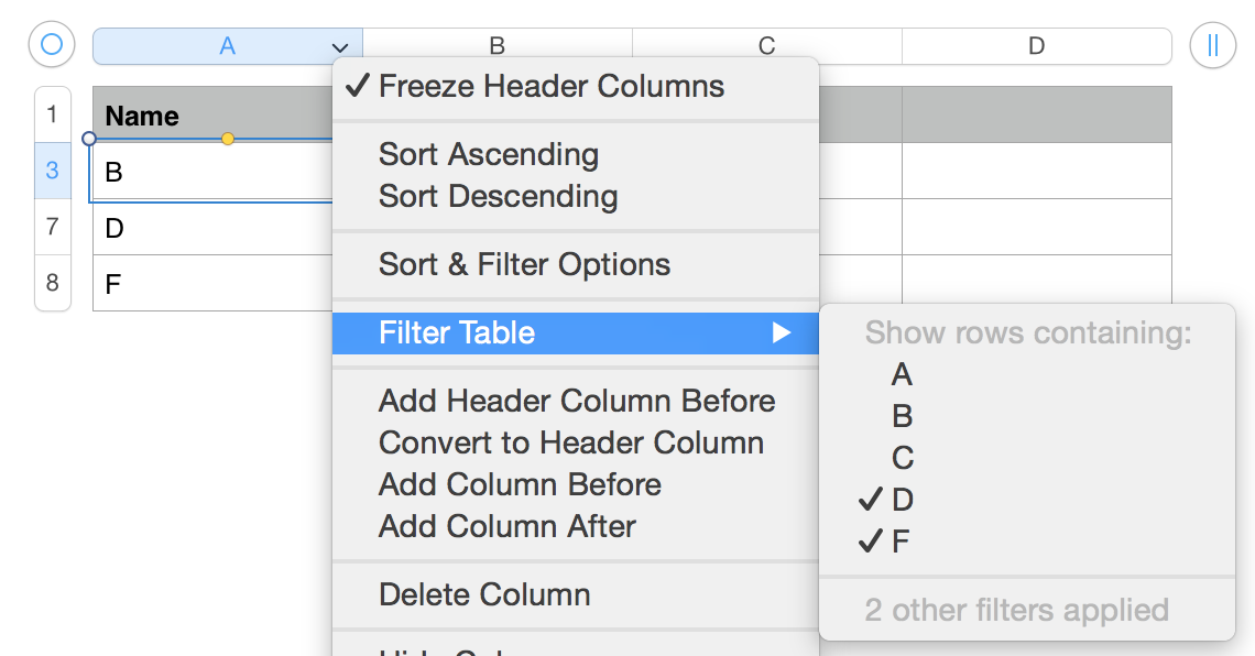 I have a spread sheet that I would like to filter by "Customer Name" in a column. There are multiple customers. Is there not an option to have them all listed in the filter selection, as in Excel, to check or uncheck without having to go back to filter again and recheck each one?