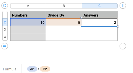 Numbers: When inserting a formula for division when typing in the "/" divide sign, only returned the default " ?