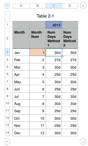 D3=EOMONTH(DATE($C$1, ROW()−2, 1),0)−DATE($C$1, ROW()−2, 1)