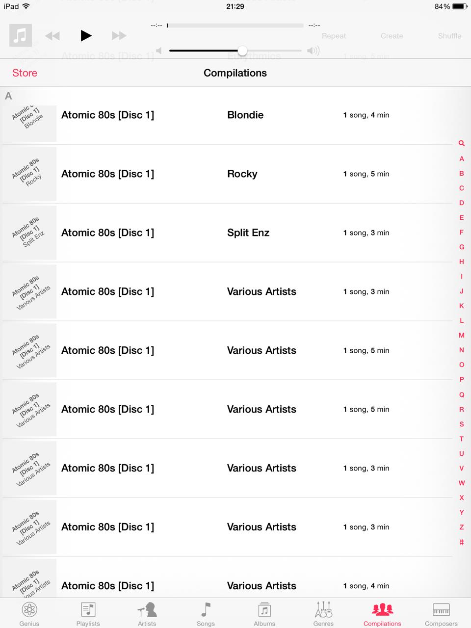 But what I have found tonight has pushed me over the edge. 20k+ tunes, bought a few more last night from the iTunes store, went to listen to one via iTunes Match on my pad tonight to find every album near enough has been split into songs or small groups of songs. Also interestingly I haven't physically downloaded any of the recently bought music to my iPad yet mysteriously 8 tracks from one album have been download onto my iPad.