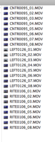 Ok here is my situation. I have 3 camera setups. Each camera has their own set of mov files. Anywhere from 5 to 9 files for each. I need to break them down into 3 files Left Right and Center. What is the best/fastest way to combine each one into L R C so I can add them to FCP 7 to perform a multi clip.. Thanks!