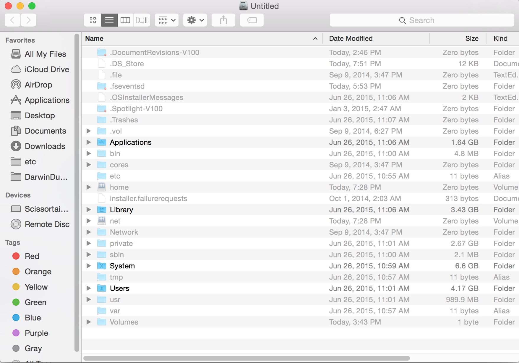 And an image from my root folder... I have added none of these files and have no access to /home or /net. And can't get rid of Remote Disc either.