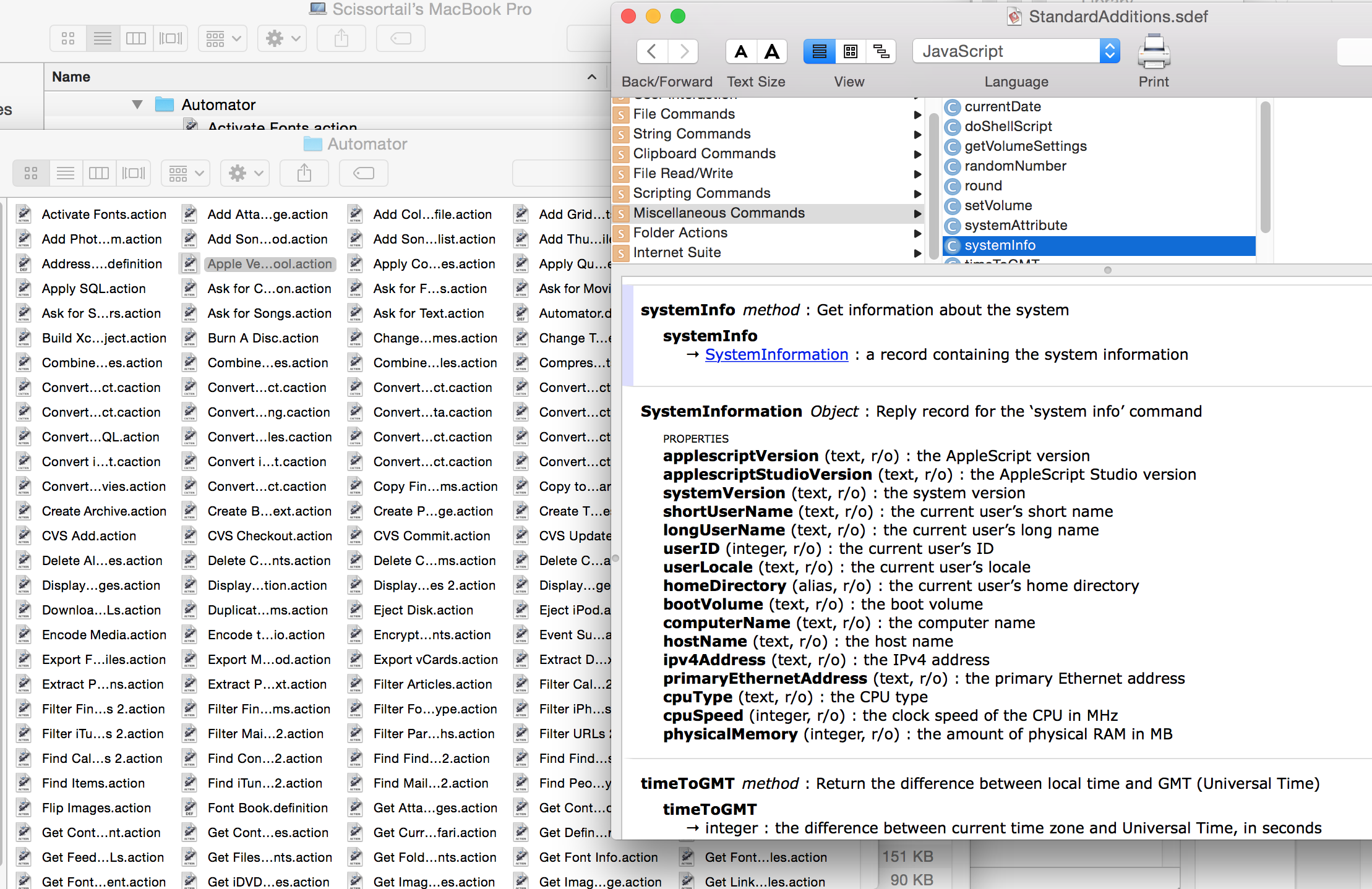 Another anomaly: the Automator scripts in my System Folder. I haven't touched Automator on this installation, and that's one of those fishy updates that happens at the tail end of every fresh Apple Recovery Drive reinstalls. I can't open them to see what they do, but there are libraries installed in Script Editor that I know aren't standard.