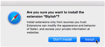 1. Download and install the "Stylish" extension from Apple's website or from the developer's website. Double-click on the extension from your Downloads folder and click on the "Install" button.