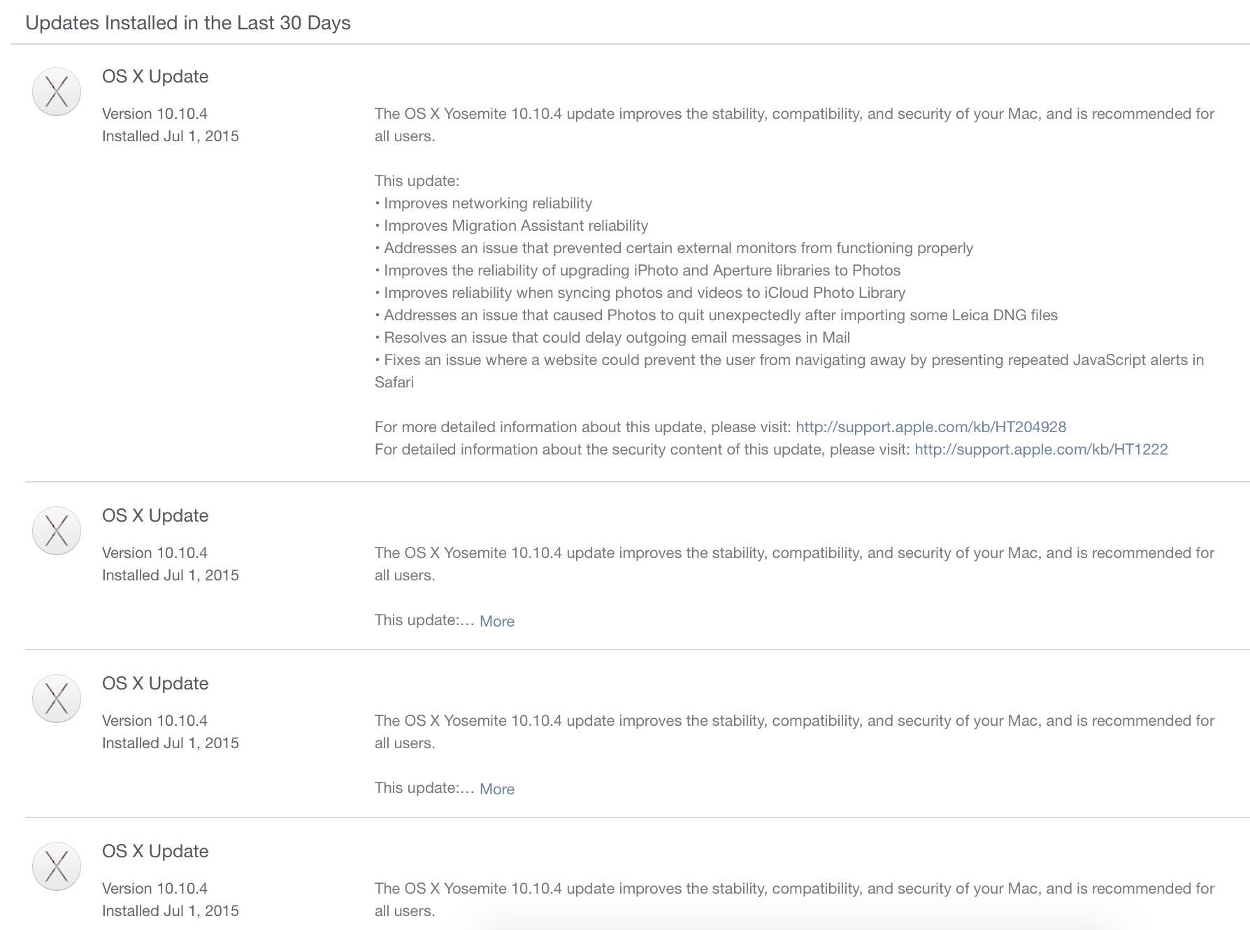 My MBP 15”, Early 2011 does not even has the OS X 10.10.4 update in its App Store Updates. Even three updates (iMovie, GarageBand and Mactracker) do not update even where they are supposedly being available for Update.
