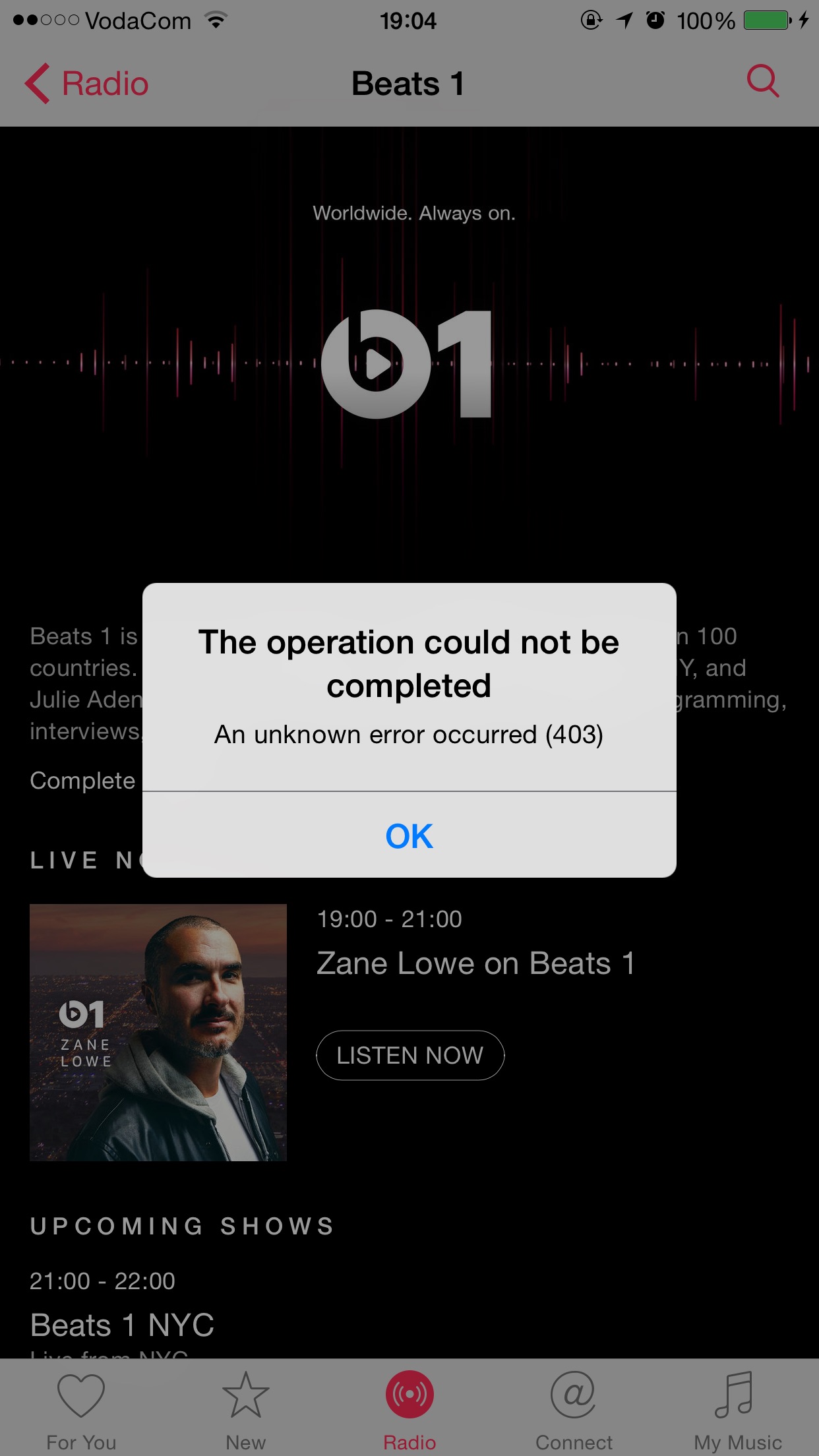 i have the same problem , error 403 and i am from Romania , we have Beats 1 official. but on my pppoe connection doesn't want to work on my iPhone or my MacBook. Apple , please solve this.