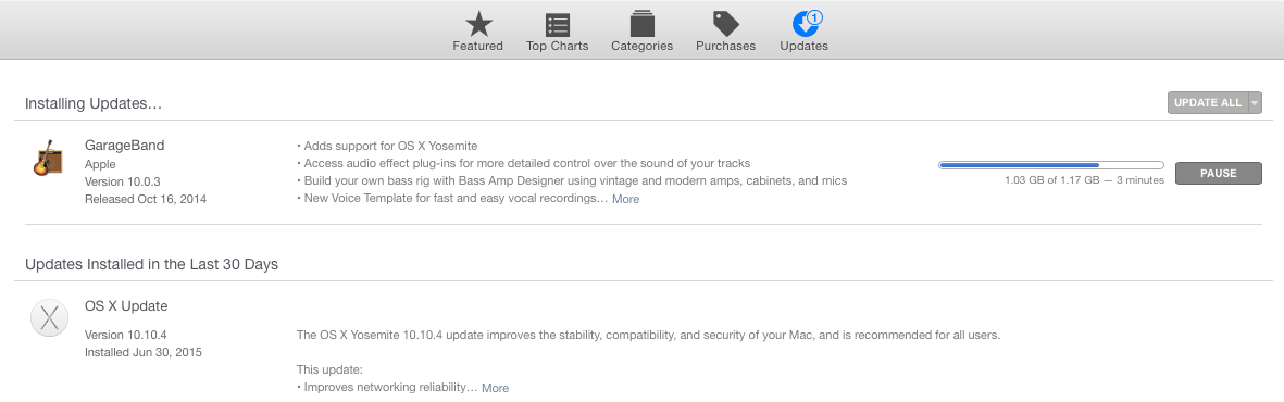 Updategate continues... with a new "update" to a version of Garageband I already have from October 2014 (v. 10.0.3)... yet still no iTunes 12.2. Very strange indeed. Dear Tim, please fire someone regarding cloud updates of iTunes 12.2. Oh yeah - and while you're at it, fire EVERYONE involved with iCloud (yes, it's that bad).
