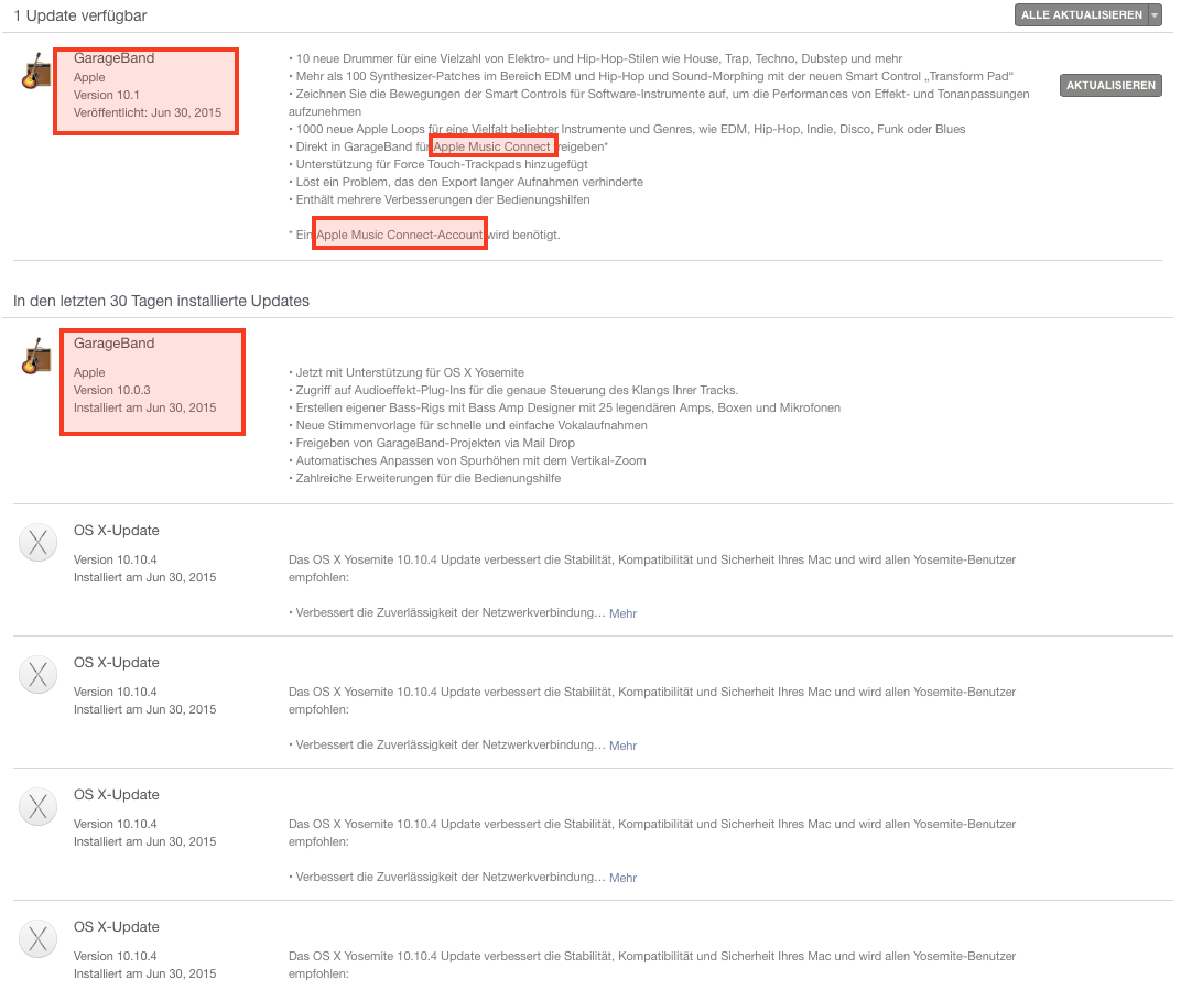 WOW! After updating Garageband to 10.0.3, the next update is out already! I can now update to 10.1! New Loops etc + Apple Music integration! Can’t wait to start publishing out my few experiments to Apple Music! And, wait, get no respond from any Mac user, but thats fine. And I’ll never go to put something on Apple Connect. And how to create an Apple Music Connect Account without iTunes? But hey, Apple has proven that they can publish Updates really fast!