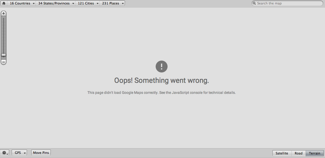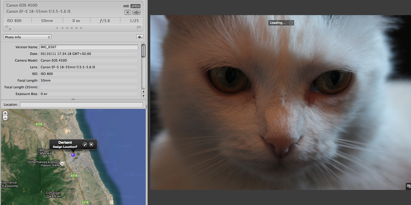 1) On the photos that have embedded location information, I can see the location name BUT the map is blank. It makes me worry that the location data is defective. Any ideas on how I can get the map to display. (I actually DO see the correct map for a brief instant before it switches to the blank white box you can see in this screen capture)
