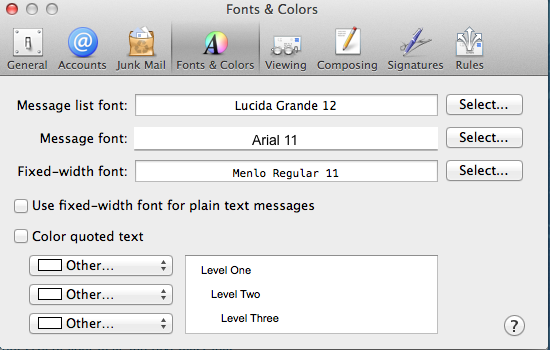 I have my MacMail set to use an 11 pt Arial font when writing messages, which is a standard font size for letters, etc. However when you are reading or writing your message, it does not DISPLAY as 11 point, but teeny weeny as if you are using a 6 point font.