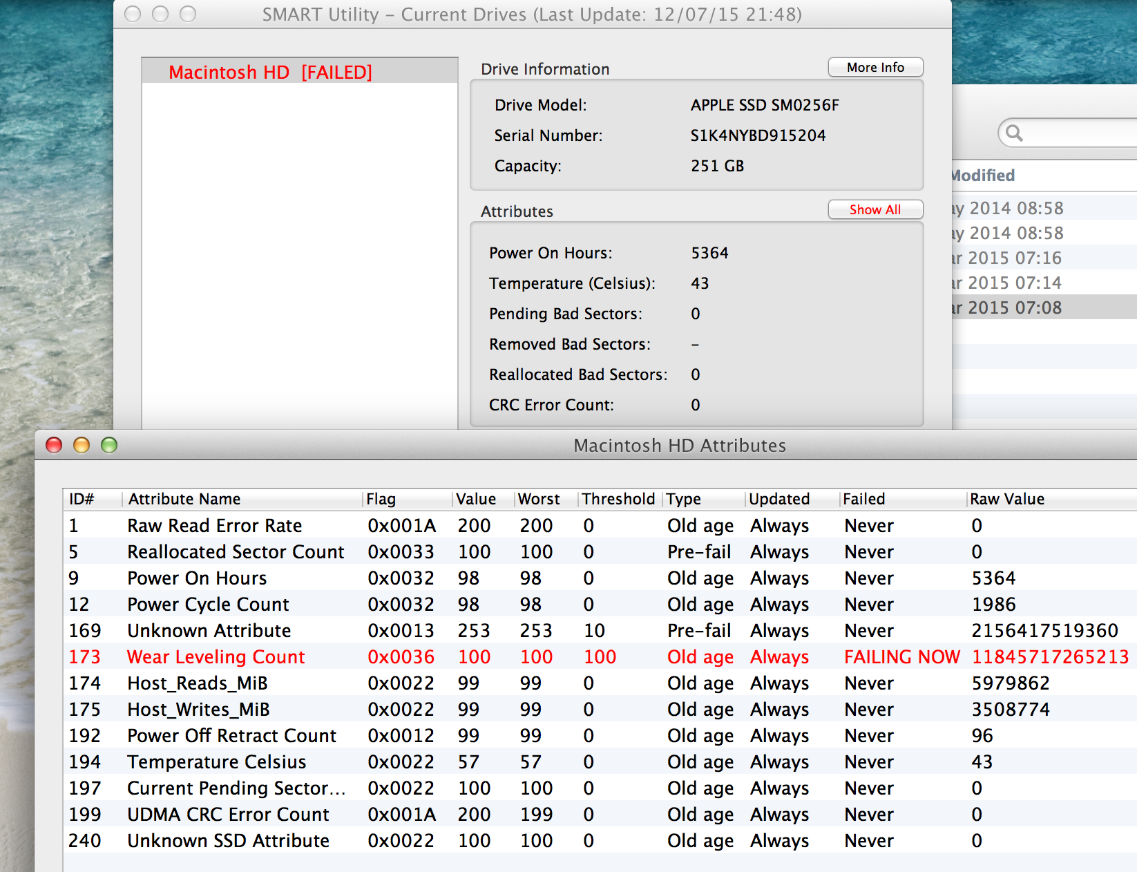 But when i installed "SMART Utility" I saw that the only attribute failing is "Wear leveling count".