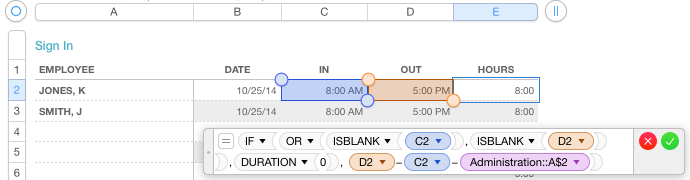 D6 =DURATION(,,IF(LEN(C6)*LEN(B6)>0,MOD(INT(C6/100)+MOD(C6,100)/60-INT(B6/100)-MOD(B6,100)/60+24,24),0))
