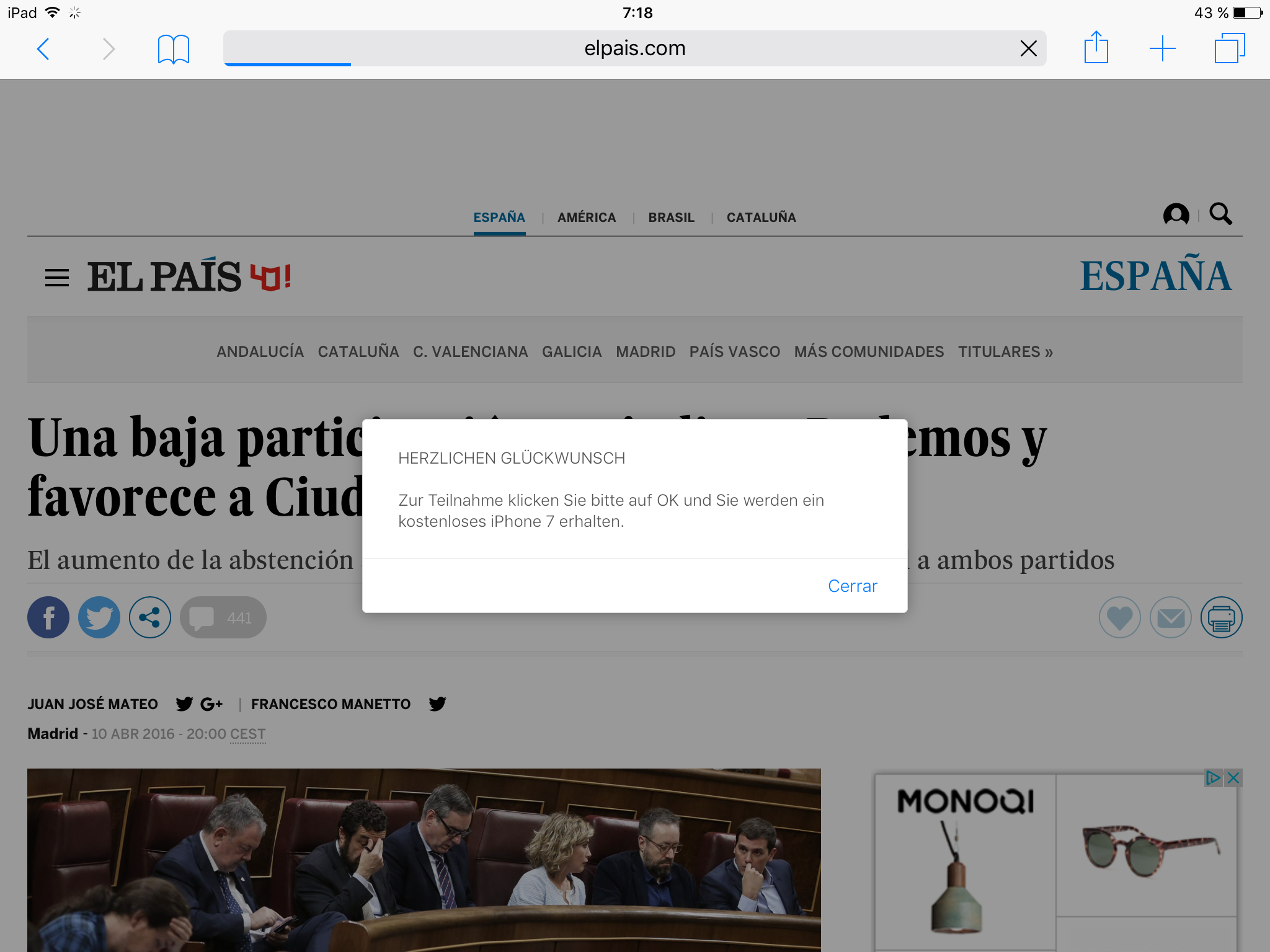 I have received a malware warning on my ipad: "http://www.supportm.net There is a .net framework file missing due to some harmful virus. Debug malware error 895 system 32.exe failure."