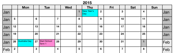 And there's Conditional Highlighting to "fade out" the cells that are not in that month: