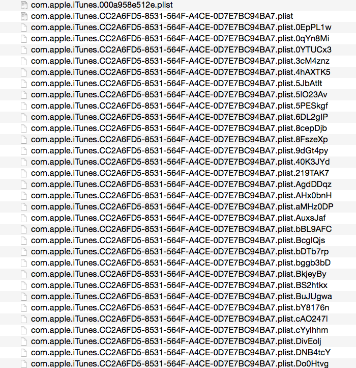 In the Preferences subfolder, there may be several files having names that begin with either of the following strings:
