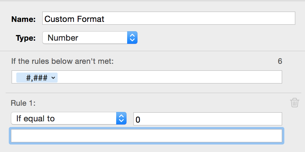 I have a number of spreadsheets with pre formatted calculations (Example: qty x unit price = total) these are repeated in several rows. Until I enter the qty and the formula is executed, all the rows have a "zero" in the calc' result. How do I get the cell to be blank instead of showing the zero? In Excel there is a preference you can select that will hide the zeros. I cannot find anything like this in Numbers. Is this possible to accomplish?