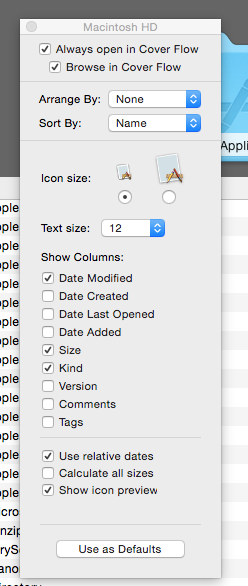 - With that Finder window as the front window, press the key combination ⌘J to bring up the View options.