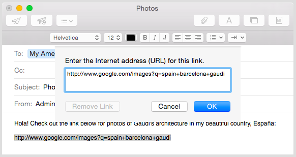 Then I would have liked to copy/paste directly the link, but, what I pasted was just "my country", the two words without any link.