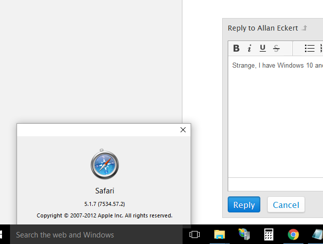 I have a Dell laptop and just downloaded the free version of the new Windows 10. After installation, i was requested to update my Safari browser to the latest version. Any ideas?