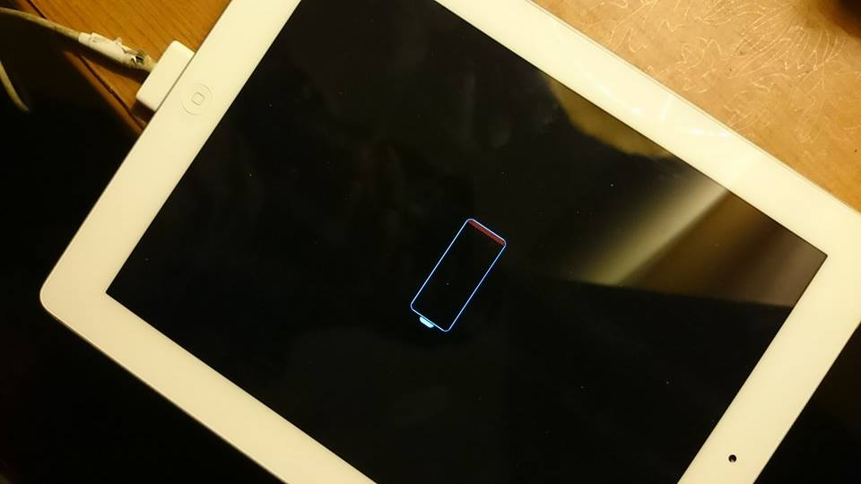 My iPad is fully out of charge and whenever I connect it to a power socket it never changes from this screen: