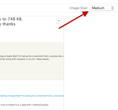 How do I reduce the size of a screenshot when emailing in Apple Mail? I'm taking the screenshot from a preview doc, which is 168 KB and then when I paste it into an email it jumps to 748 KB. Using OSX Yosemite V.10.10.4. Many thanks