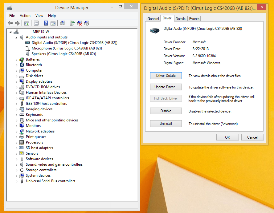 I'm coming from a Windows background so I'm pretty familiar with that side of things. In device manager I've no issues showing with the "Audio inputs and outputs" nor "Sound, video and game controllers".