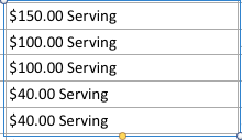 The solution requires that the currency sign used is $, that there is no space between the currency sign and the 'number' part, and that the only text following the 'number' is " Serving" (including the leading space).